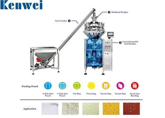 Η αυτόματα συνδυασμένη μηχανή ζυγίσματος και συσκευασίας με έναν τροφοδότη βιδών είναι κατάλληλη για τα ζυγίζοντας σάκχαρα, το άλας, τους σπόρους, το ρύζι, το σουσάμι, το γάλα σε σκόνη, τον καφέ, την καρυκεύοντας σκόνη, και άλλους μικρούς κόκκους και υλικό σκονών. Η μηχανή συσκευασίας δεν είναι μια ακριβή και οικονομική, πλήρης σειρά των μηχανών συσκευασίας και βοηθητικός εξοπλισμός, οι οποίοι είναι